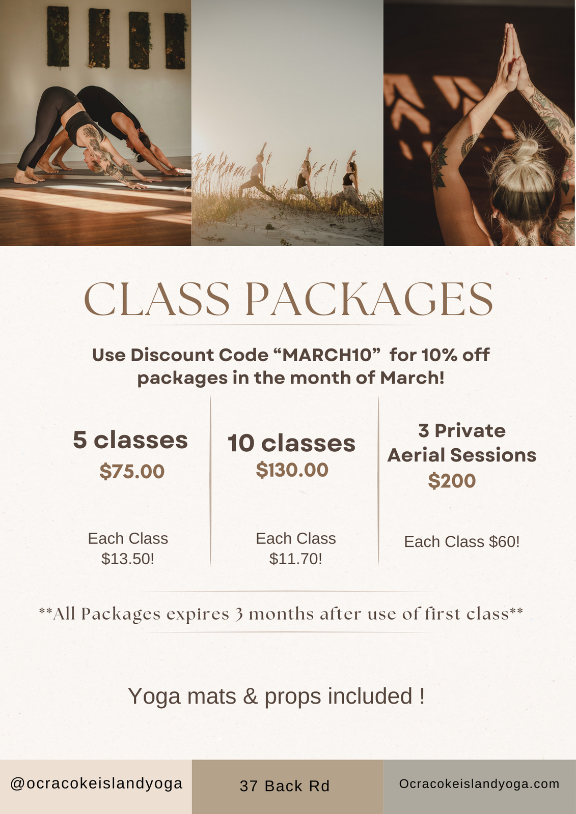 10% off Class Packages during the month of March using the discount code “MARCH10” Class packages are a great way to save $$ on each class and with this discount you save even more !