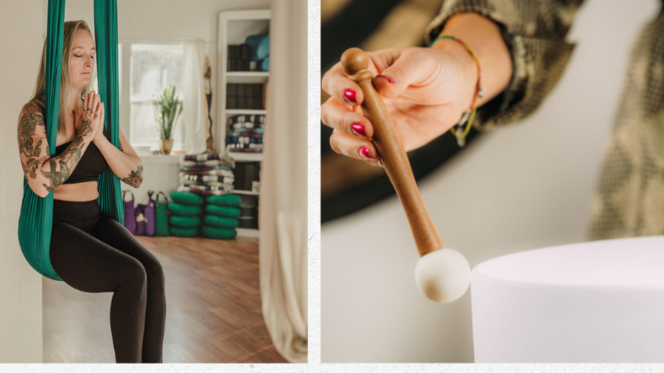 Join us for a beginner friendly Gentle Aerial Yoga & Floating Sound Bath Meditation With Savana!
